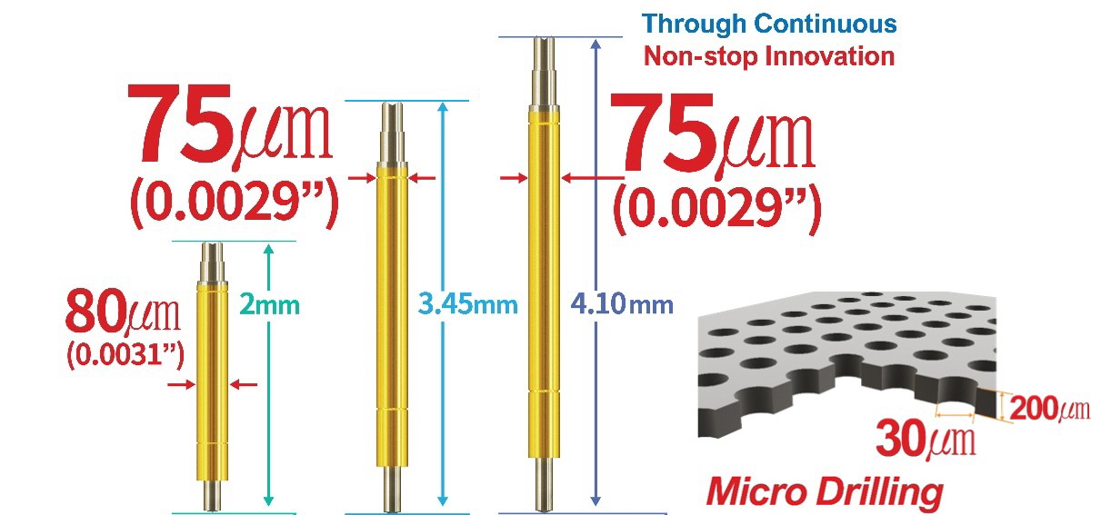 Đầu dò tiếp xúc lò xo bước sóng ngắn và mỏng nhất được thiết kế riêng cho mục đích thử nghiệm mức wafer (RF).