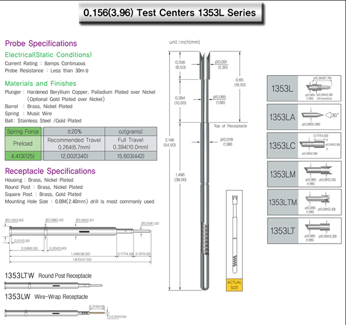 Leeno Standard Probe 1353L series - Lực lò xo 340g mạnh nhất